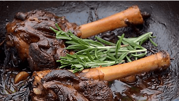 Langtidsbraiseret lammeskank i whiskey med rosmarin og hvidløg