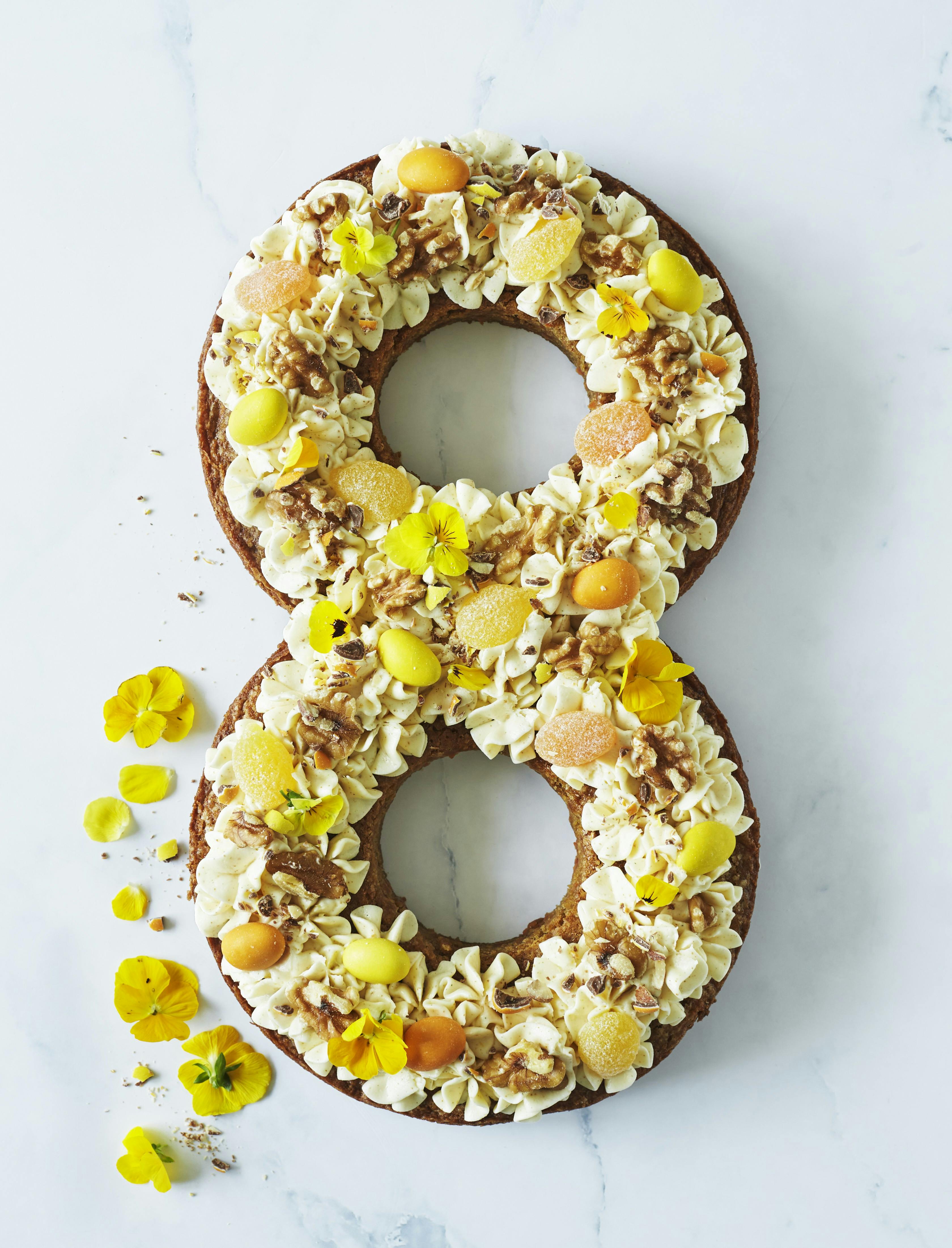 Lav en festlig kage som et otte-tal: Gulerodskage med smørcreme