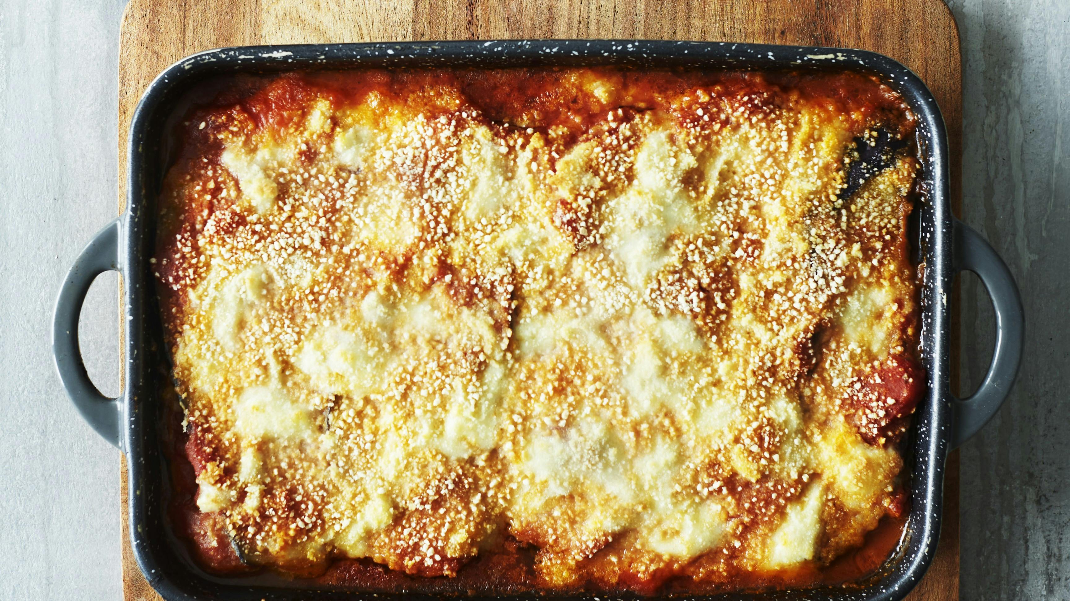 Prøv denne lækre auberginelasagne, hvor skiver af aubergine erstatter traditionel pasta for en sundere twist på en klassisk ret.