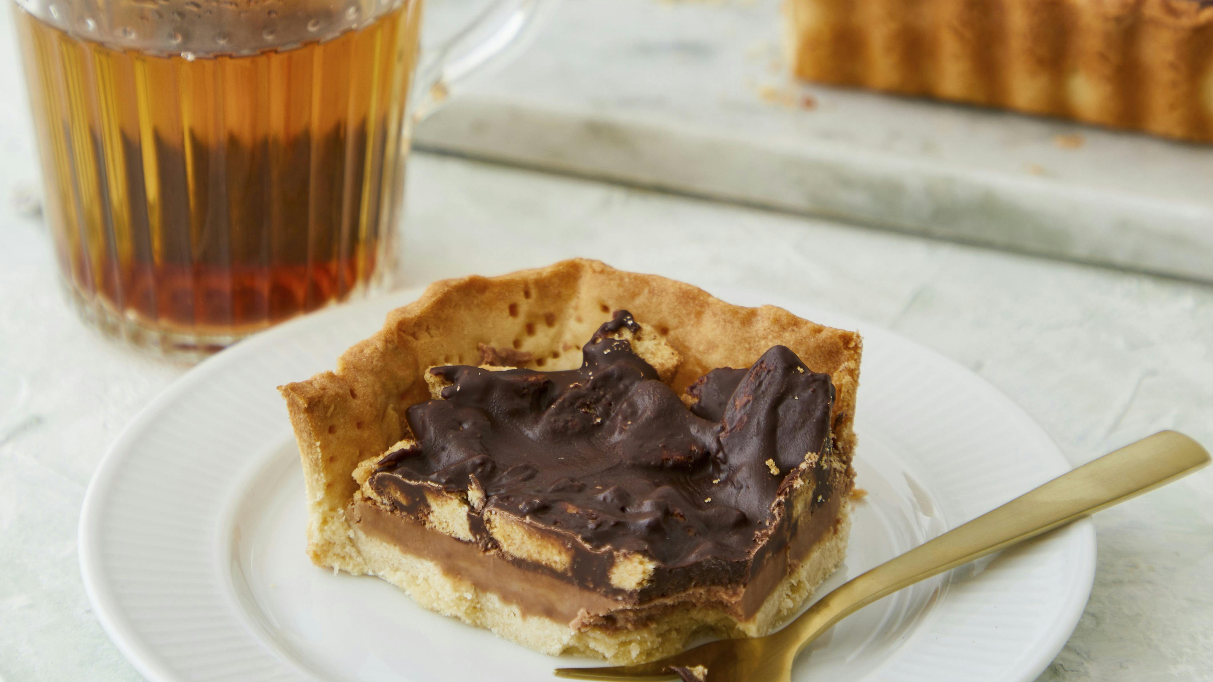 En skøn kombination af karamel, chokolade og knasende kiks - det bliver ikke meget bedre end det! Velbekomme.