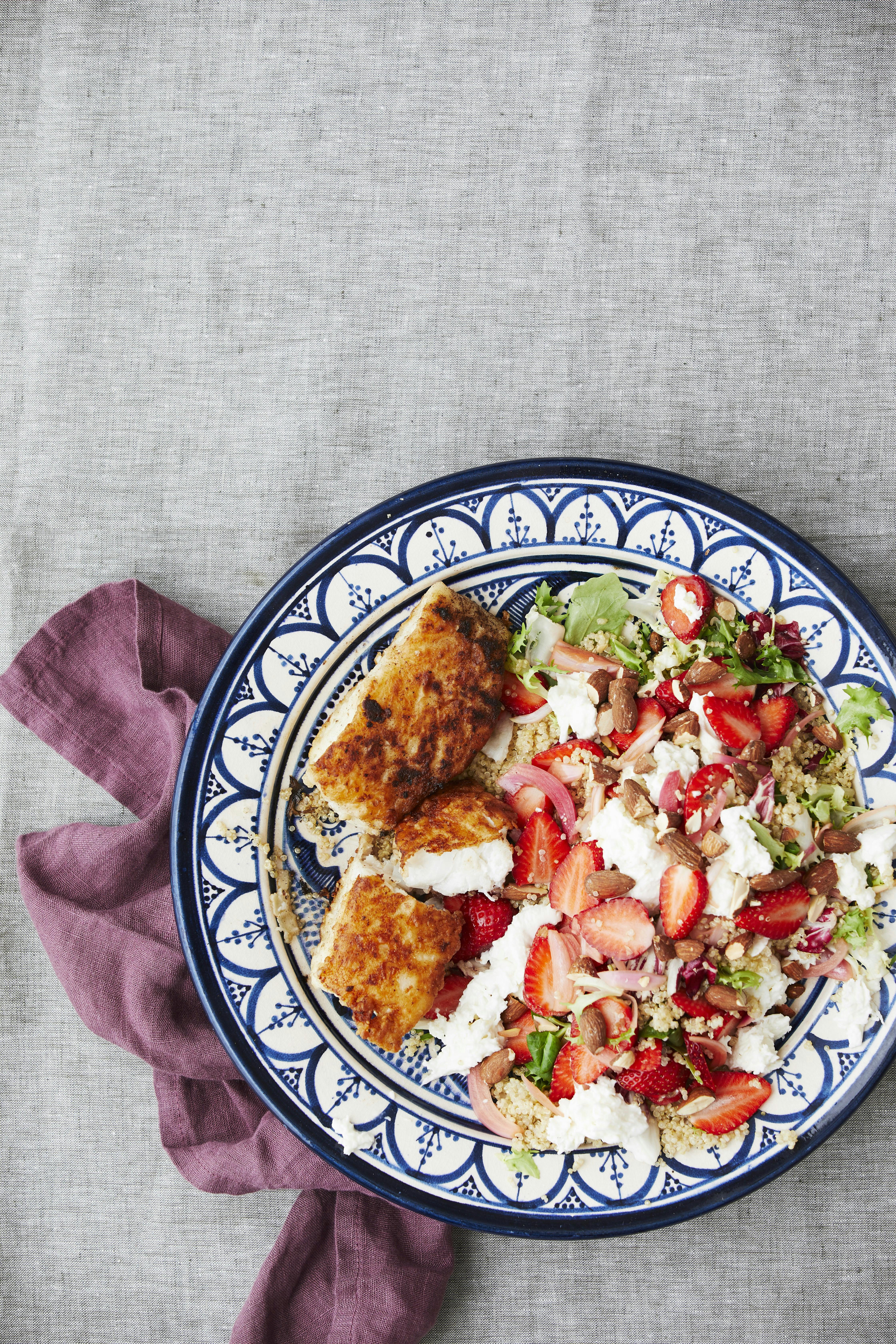 Nem hverdagsmad: Smørstegt torsk med frisk og farverig quinoasalat