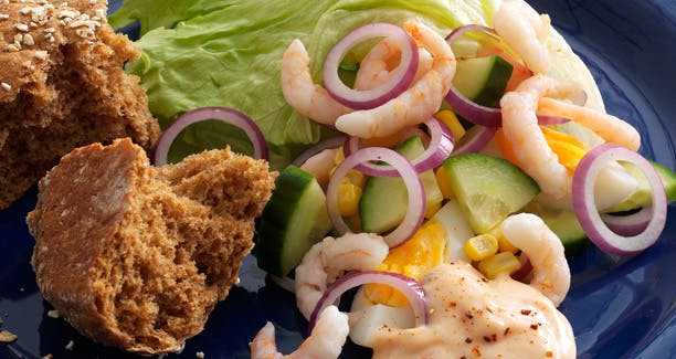 Skal det være ekstra sundt, så skift de klassiske madpandekager ud med iceberg-wraps. Fyld dem med rejer, æg og grøntsager.