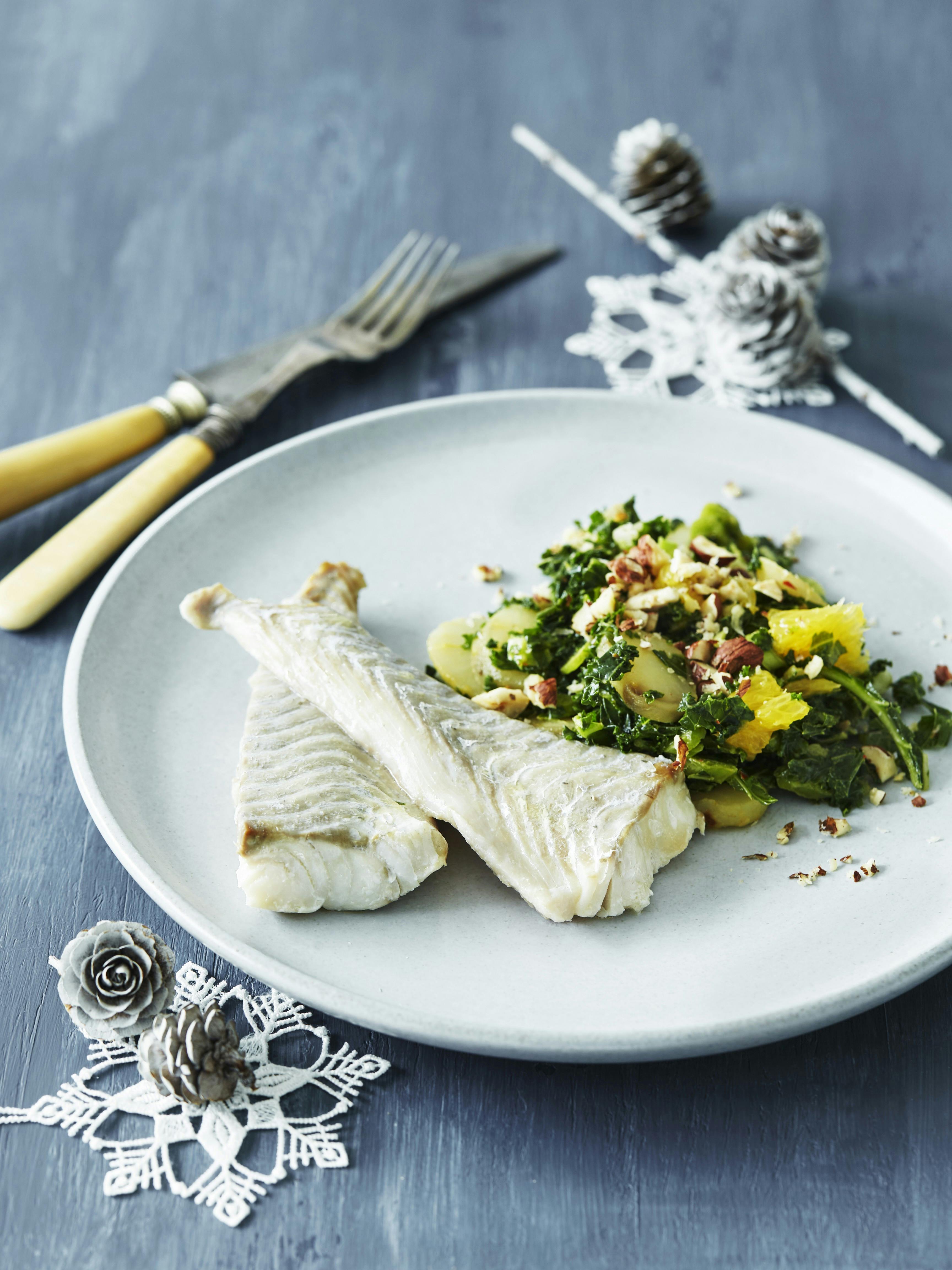 Prøv denne skønne opskrift på torsk med sprød og cremet jordskokkesalat.