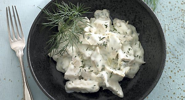 Denne opskrift til Dukan-kuren tilhører kategorien RP (Ren Protein). Kylling med peberrodssauce er aftensmad beregnet til fase 2 - Vekselfasen i slankekuren.