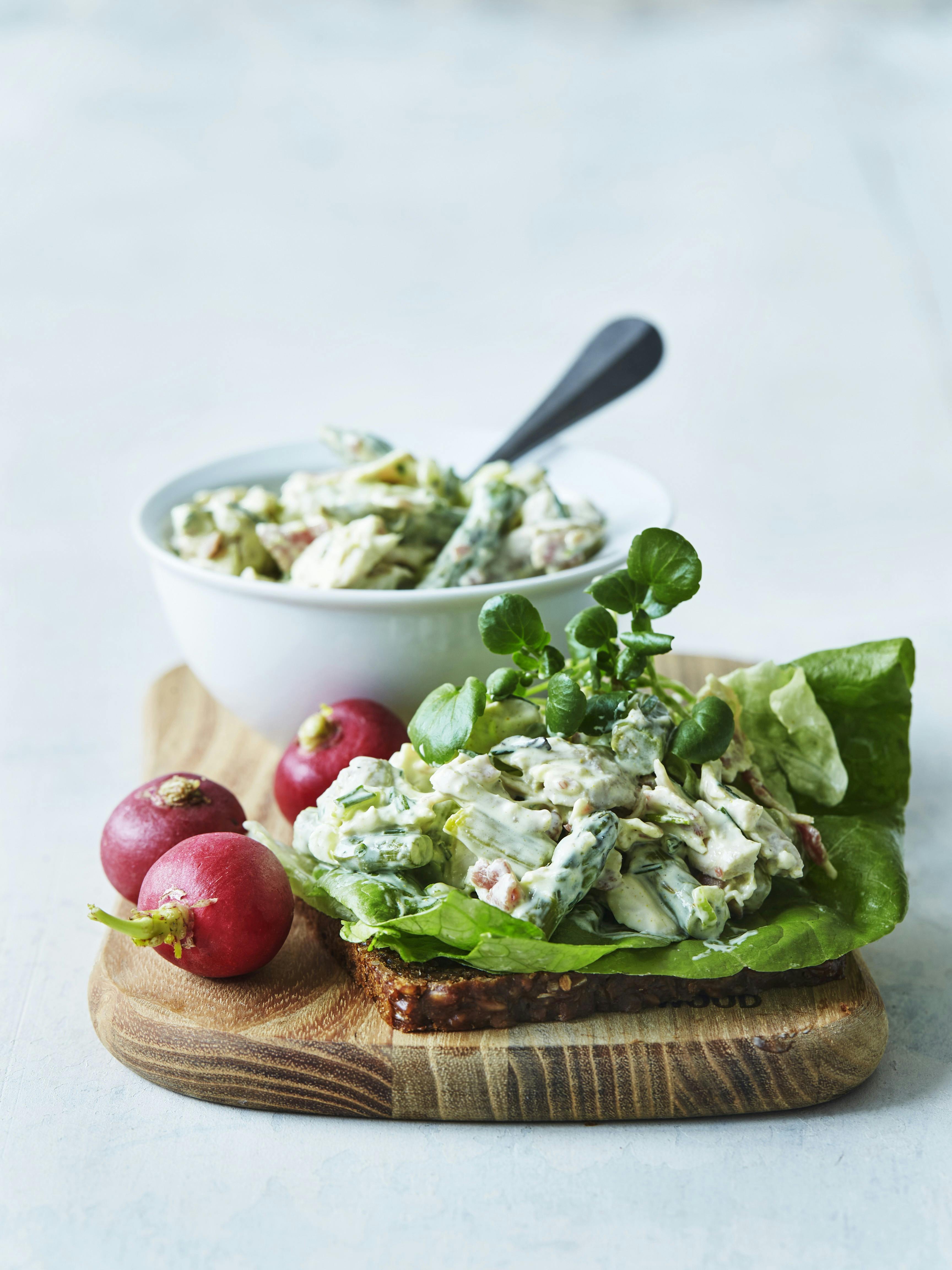 Lækker forårsopskrift: Hjemmelavet hønsesalat med bacon og grønne asparges