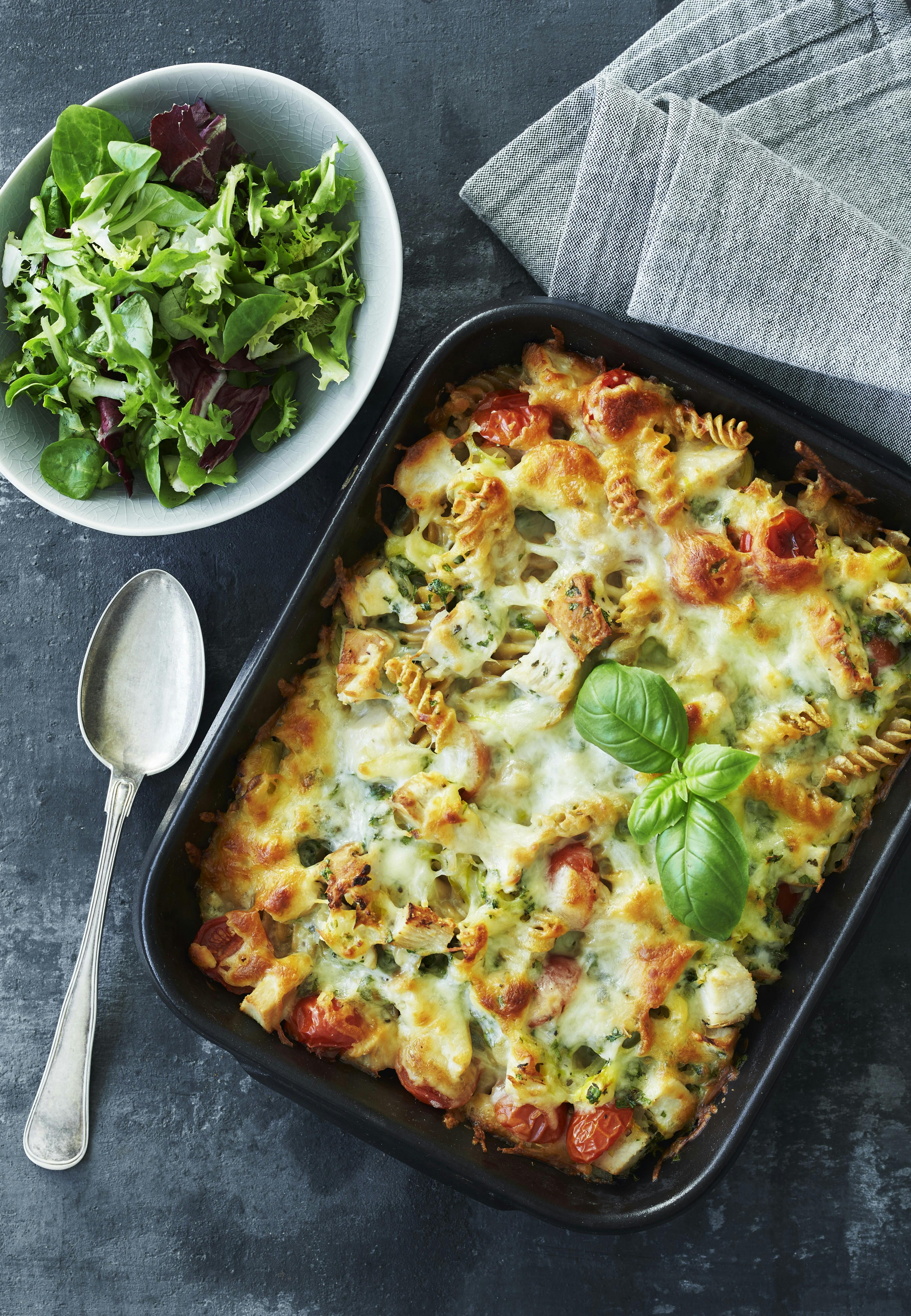 En lækker og cremet ret - gratineret pasta, der smelter i munden.
