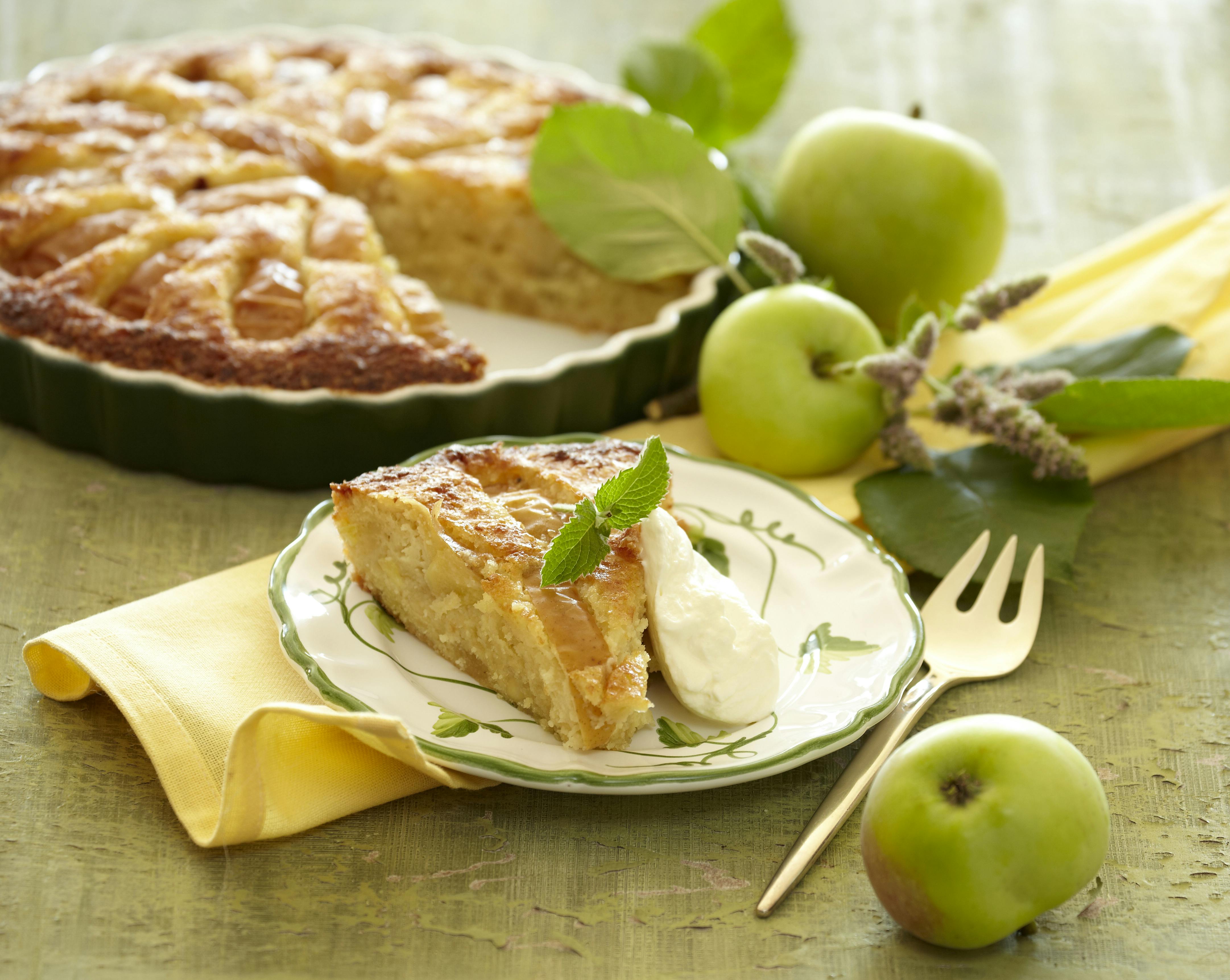 Lækker tærte med æbler, marcipan, mandler og rørsukker. Få den nemme og velsmagende opskriften på æblemazarintærte her.