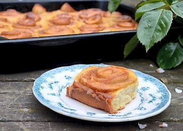 En dejlig opskrift på bløde snegle i bradepande med lækkert karamelfyld. Det er nemt at skære sneglene ud eller evt. blot at brække dem fra hinanden. En rigtig god opskrift, når der skal være kage til mange.