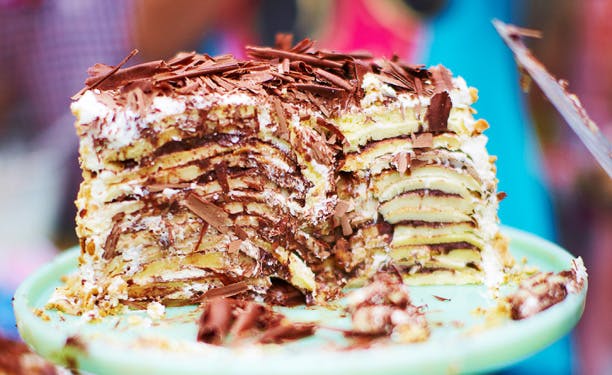 Jamie Olivers opskrifter: pandekage-kage med chokolade og nødder