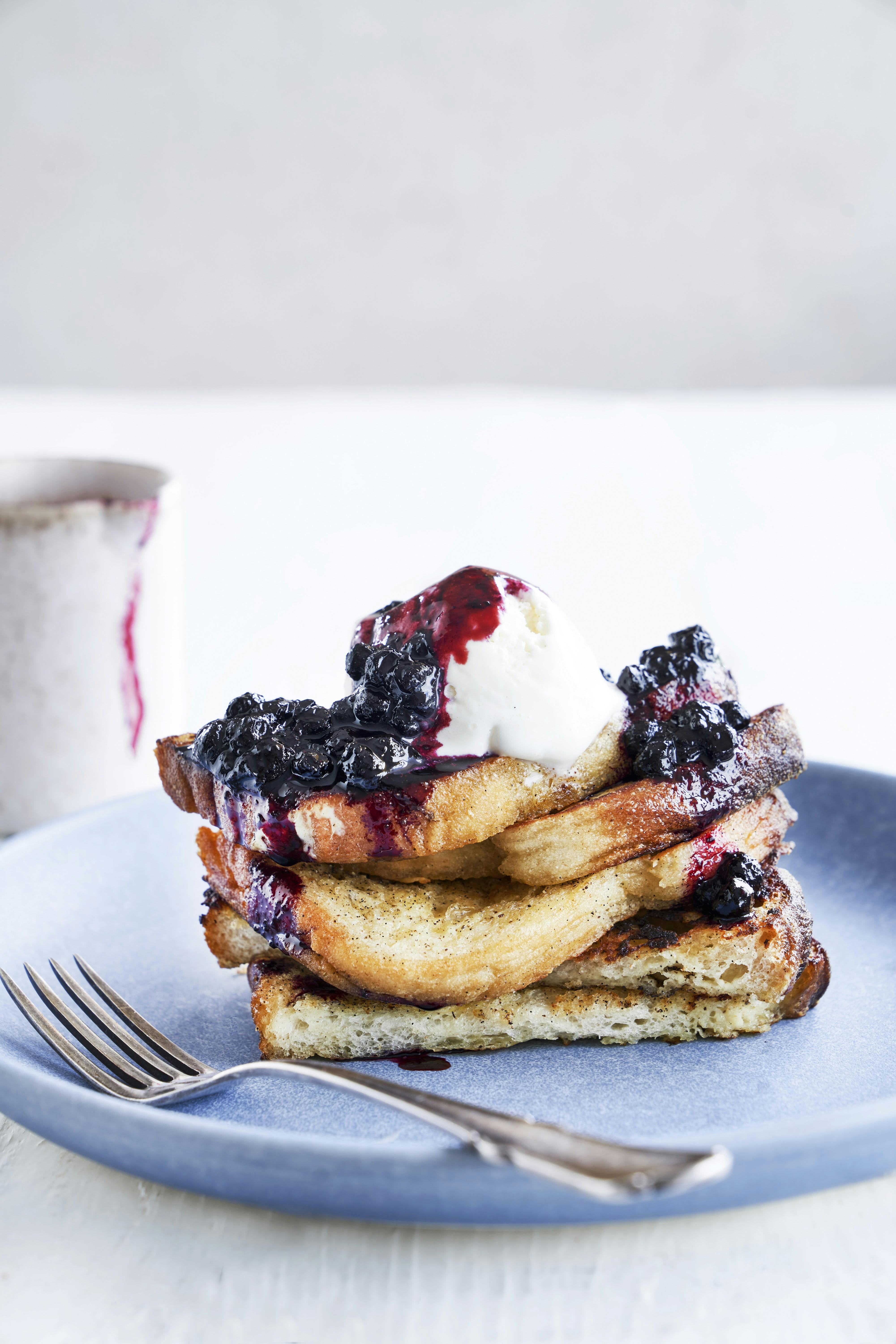 Lækker opskrift til brunch eller dessert: French toast med blåbærkompot
