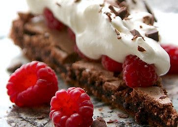 Denne pavlova med chokolade og hindbær er en rigitg himmerigsmundfuld. Den sprøde marengs med det karamelbløde indre, den mørke chokolade, de saftige hindbær og flødeskummet med hvid chokolade klæder hinanden fantastisk.