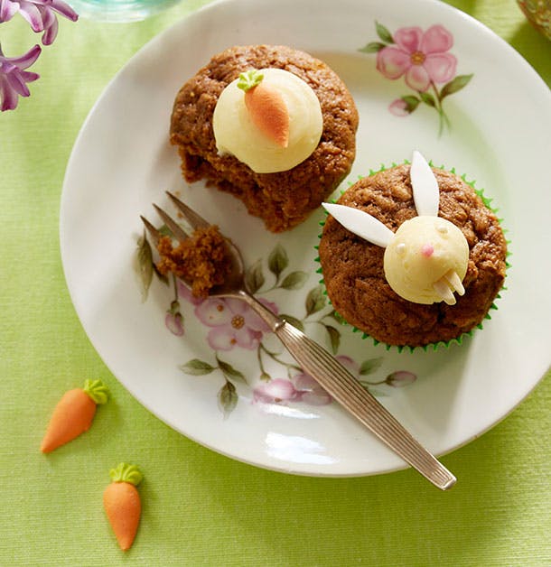 Her får du en lækker opskrift på cupcakes med gulerod og påskepynt. De passer perfekt til påskebordet, når familien kommer på besøg.