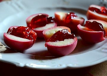 Lone Landmands råsyltede æbler med ribsgelé er helt perfekte som tilbehør til julemiddagens fyldige kød, men de passer også fint til en gammeldags oksesteg. Og så pynter de flot på middagsbordet.