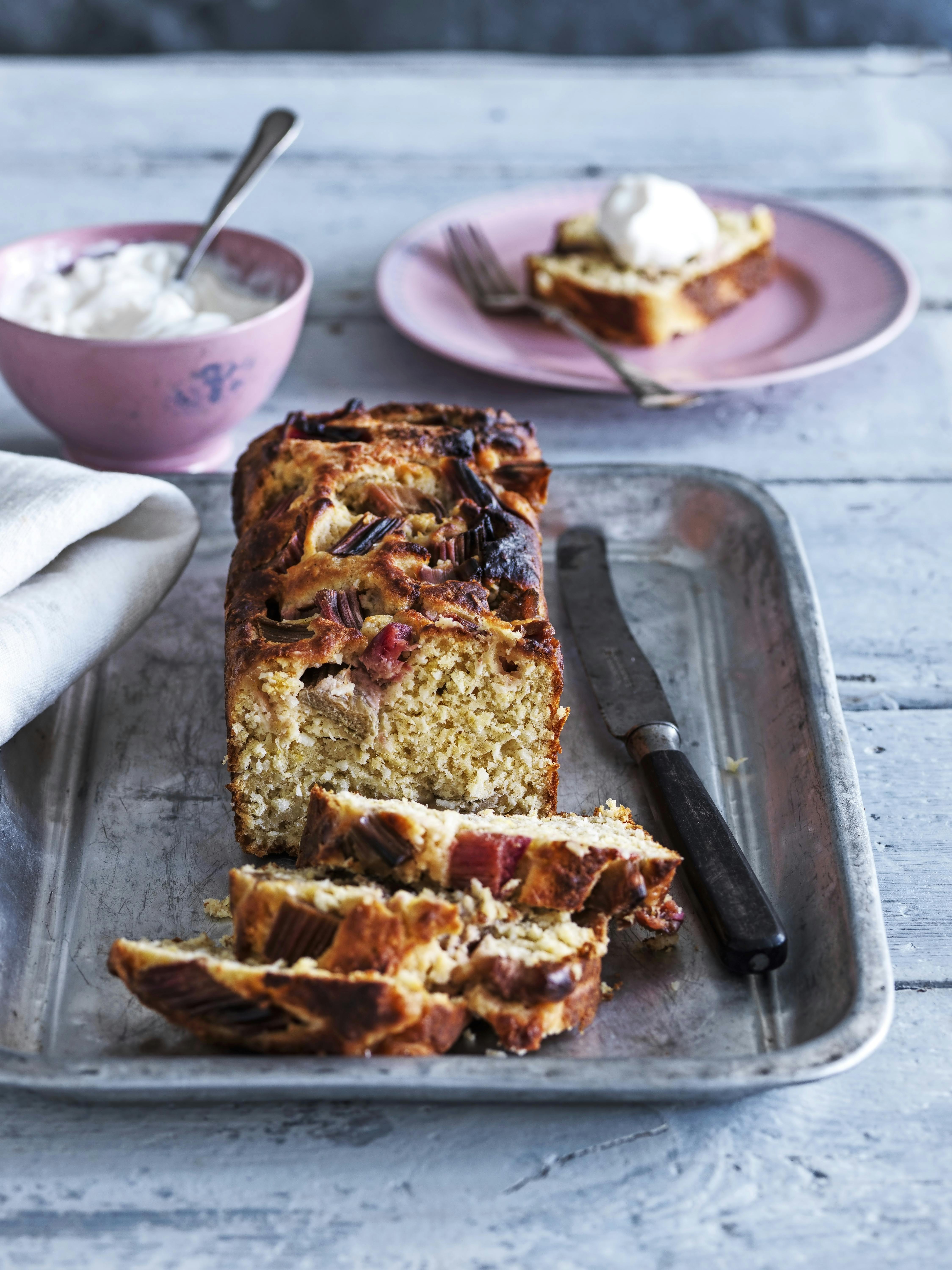 Denne saftige rabarberkage kombinerer syrlige rabarber med en sød, svampet bund, der gør den til den perfekte dessert.