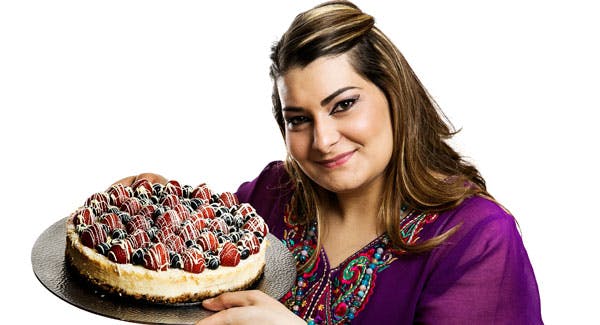 Rasha er palæstinenser og født i Dubai. Hun har rejst i hele verden, og hendes kager er inspireret af de kulturer, hun har mødt på sin vej. Her får du opskriften på Rashas helt egen cheesecake, der minder hende om dengang, hun boede i USA.