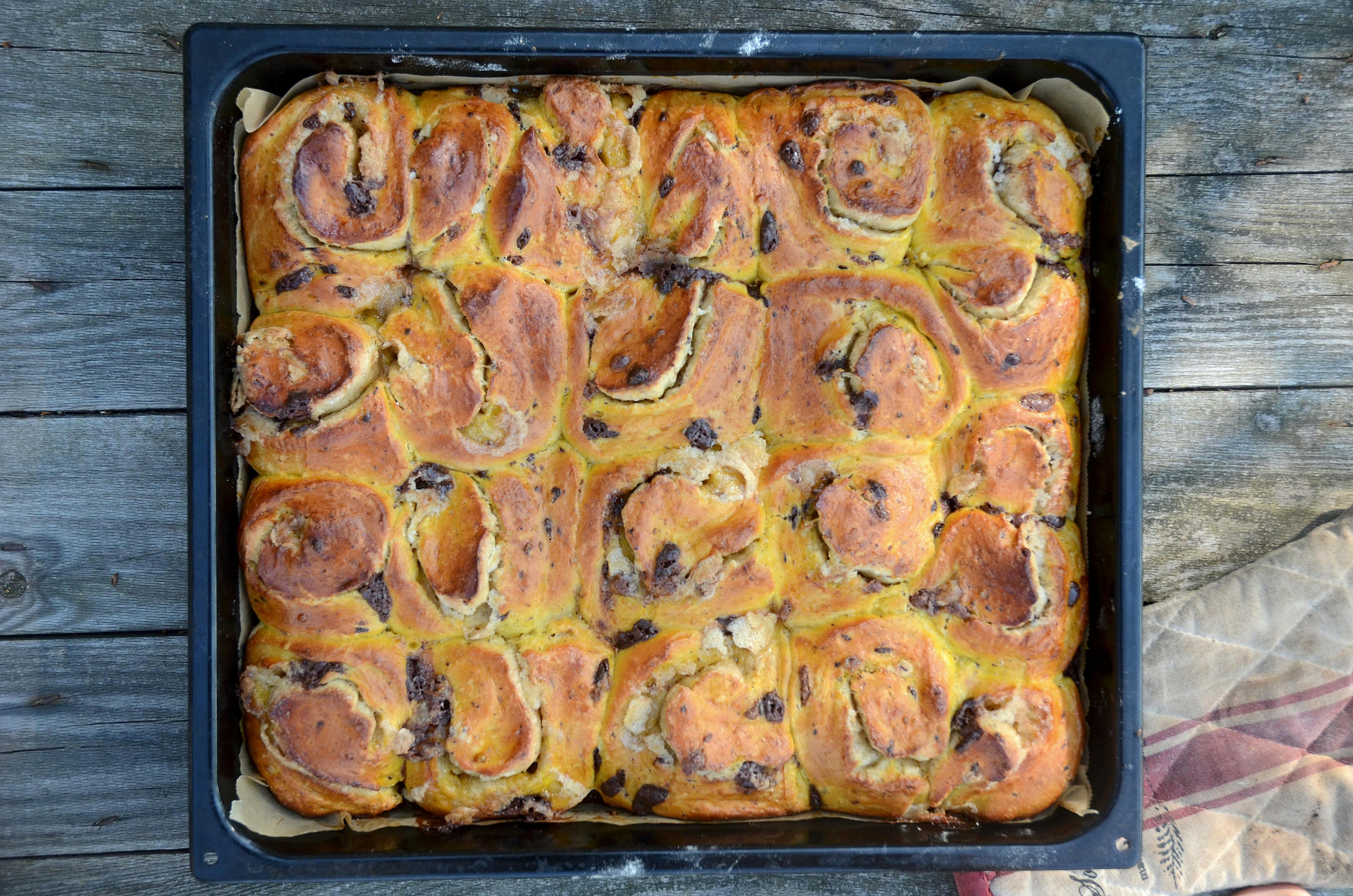 Dejlig gærkage fra bradepanden med lys eller mørk chokolade, kardemomme og remonce. Sneglene bør spises straks efter tilberedning. Alternativt kan de fryses ned og tages frem i en fart, når der ikke er tid til at bage.