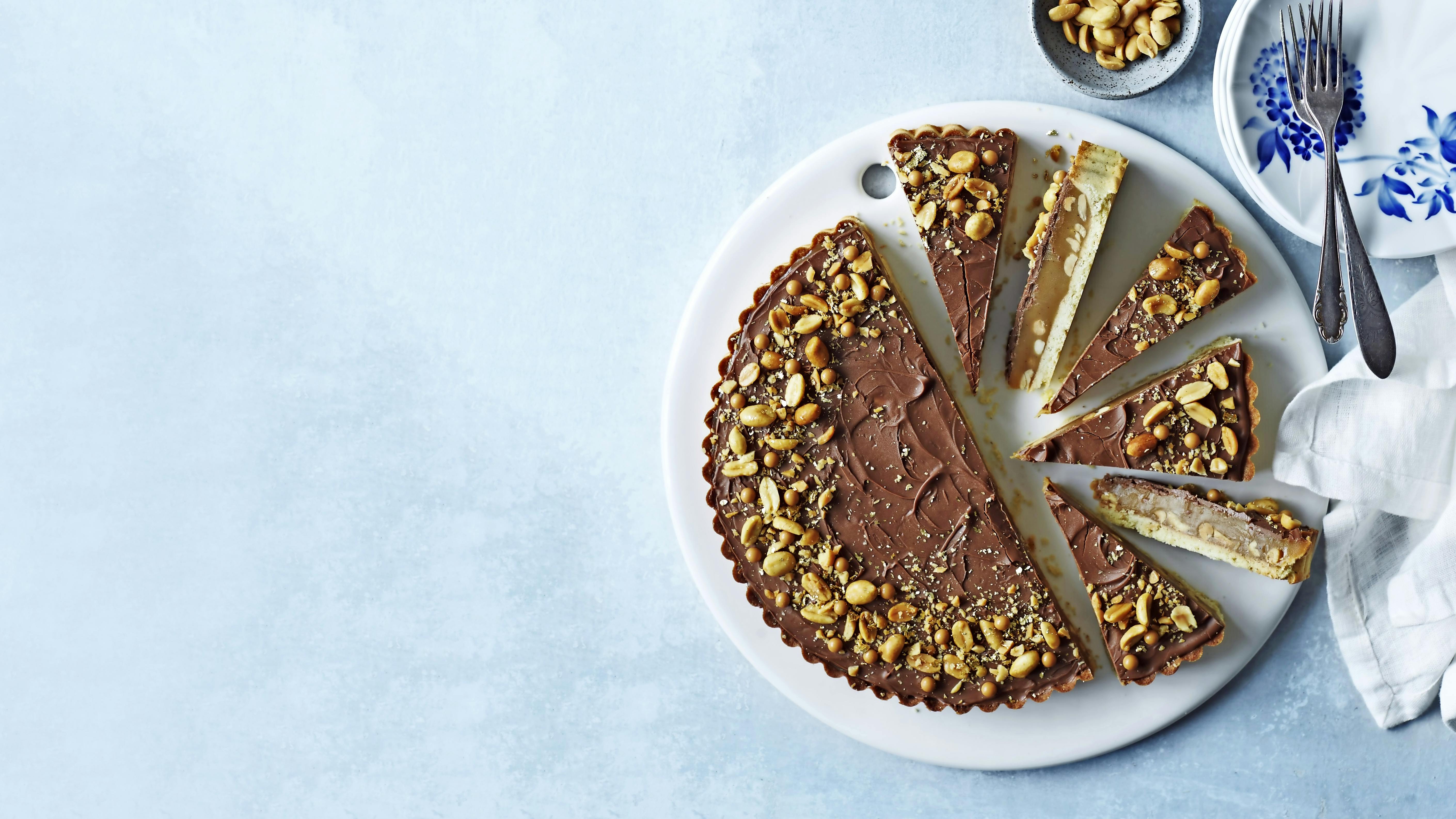 Er du vild med Snickers, vil du elske denne tærte, der er tung og tæt på den helt rigtige måde.