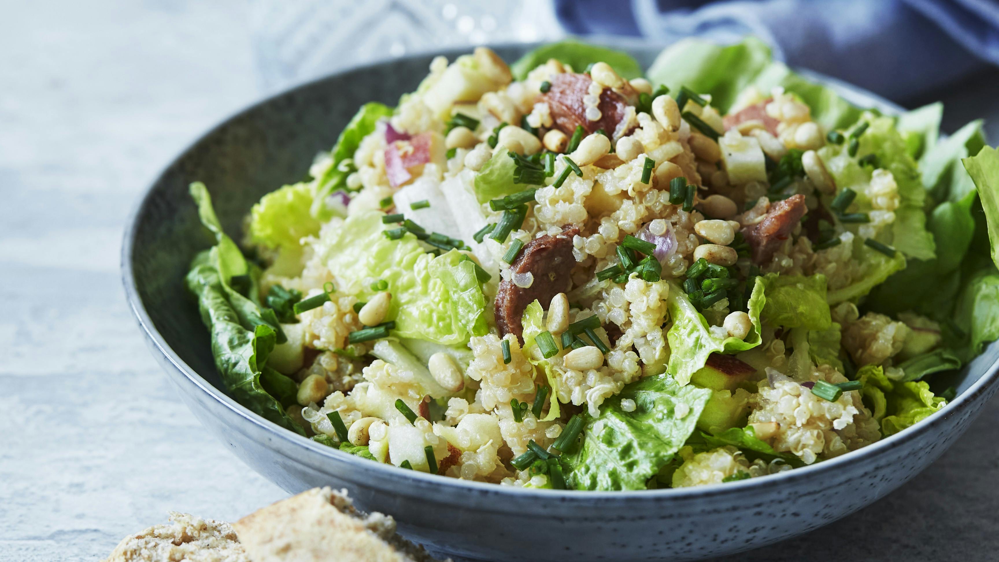 En nem opskrift på en velsmagende quinoasalat med chorizo og æble. Den er oplagt til det lune sommervejr, men kan også spises både til aftensmad, frokost eller som en del af madpakken.