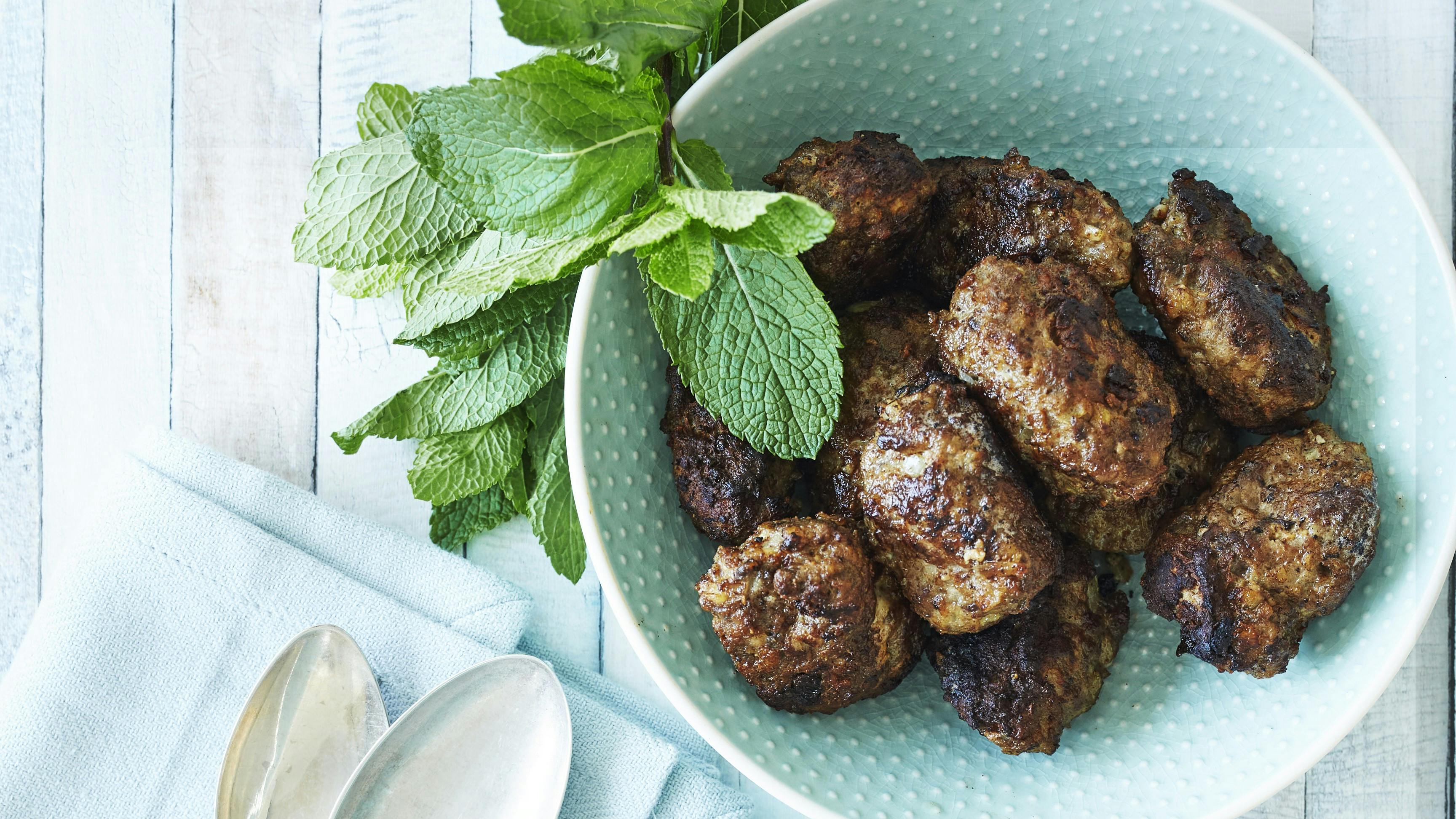 Nyd de saftige lammedeller serveret med en frisk og velsmagende græsk kartoffelsalat, der bringer sommerens smag direkte til dit middagsbord.