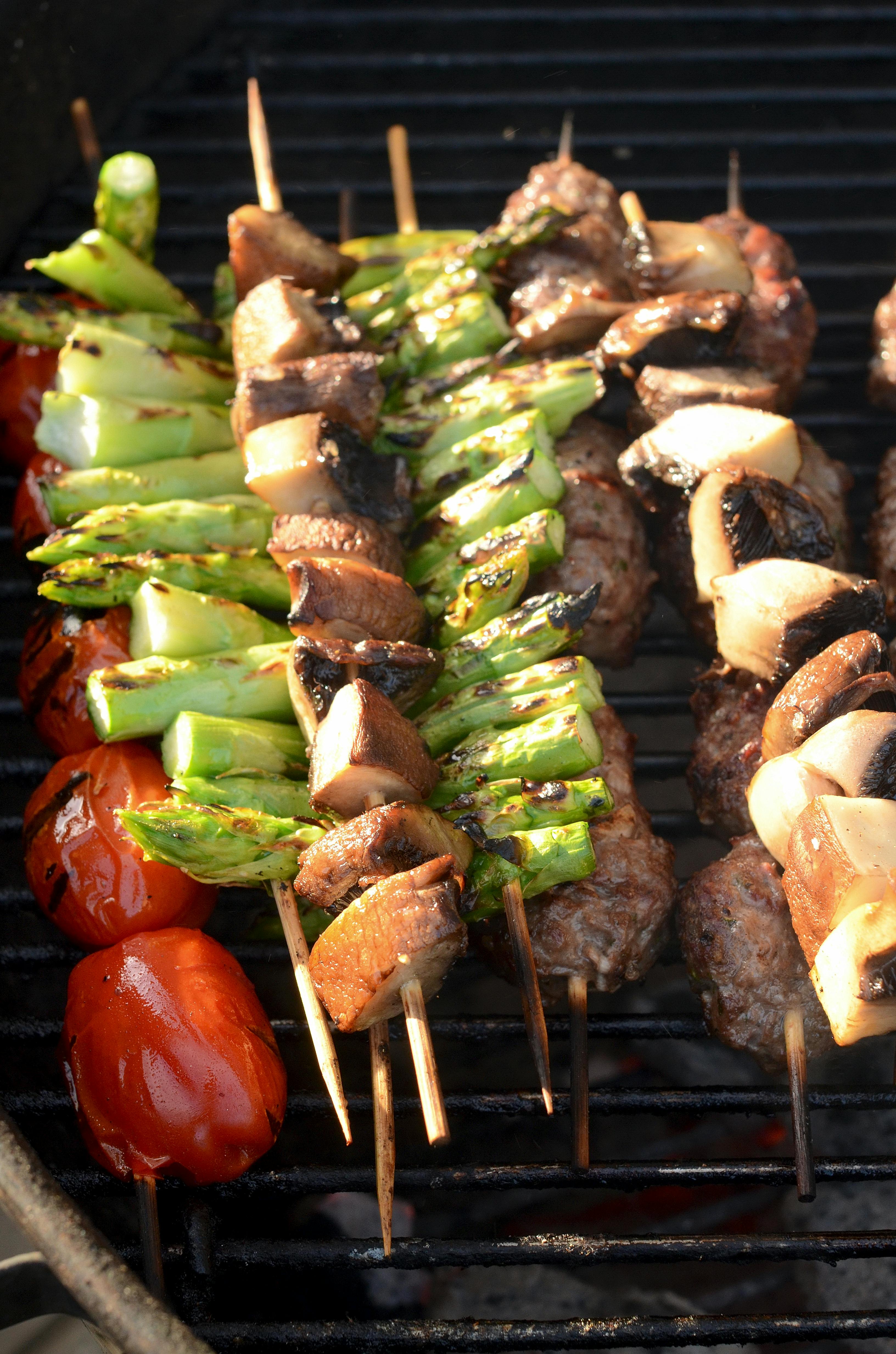 Nem grillmad med vennerne: Lam på spyd med blandede grøntsager