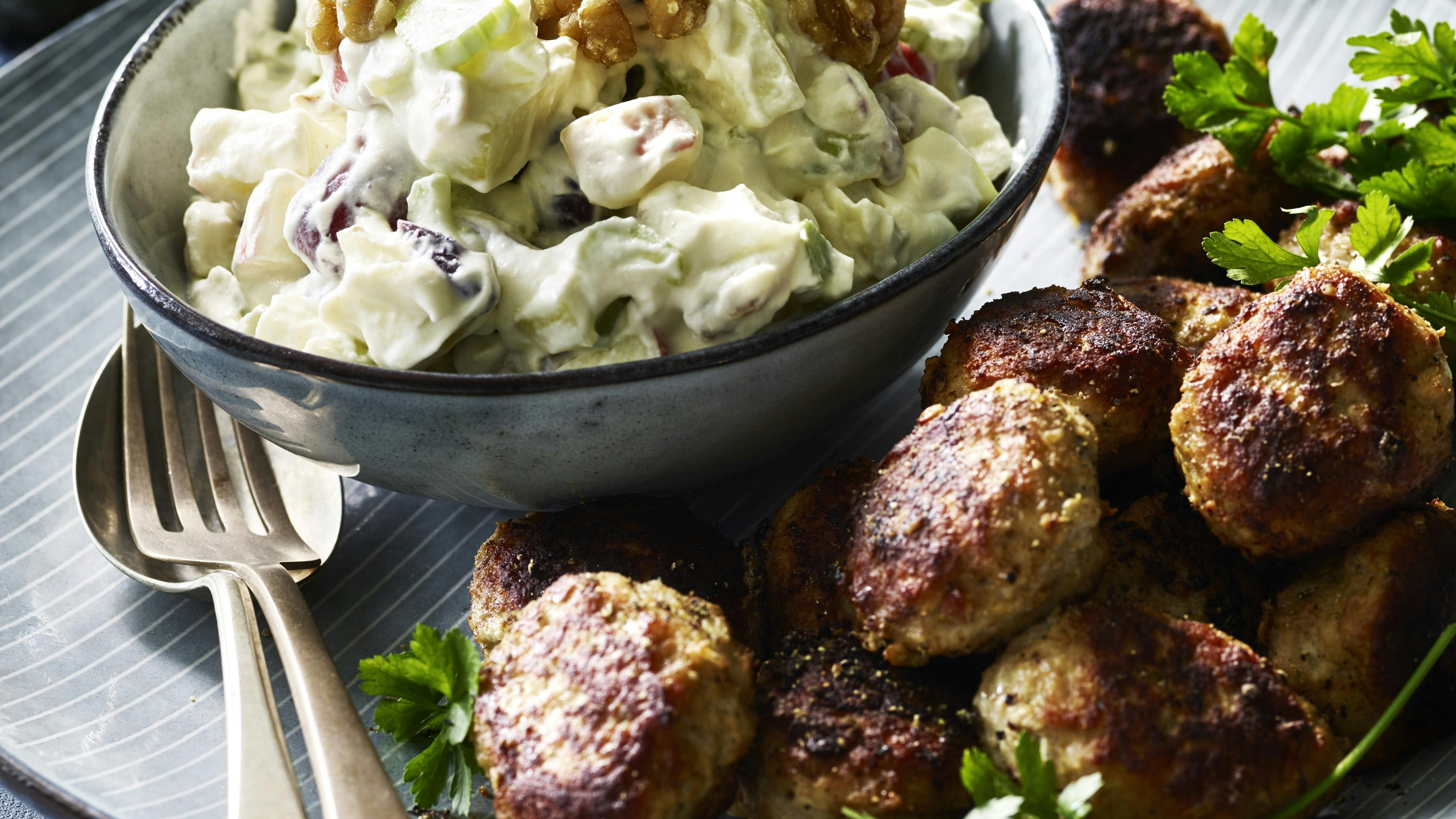 Oplev julehyggen på en ny måde med lækre julefrikadeller - perfekt kombineret med en forfriskende waldorfsalat. Velbekomme!
