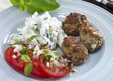 I denne opskrift på Middag a la Grækenland til Dukan-kuren får du de dejligste frikadeller krydret med persille, oregano og hvidløg samt fetaost. Og selvfølgelig følger der en dejlig tzatziki med.Opskriften på frikadeller og tzatziki er indsendt af Lone Hyldgaard.