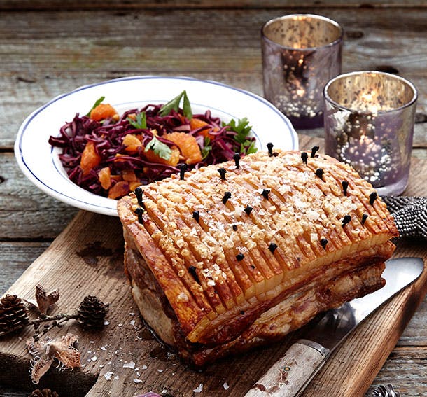 Denne flæskesteg smager fantastisk og hvis du følger opskriften, får en dejlig sprød svær. Server den med frisk rødkålssalat, der er vendt i en skøn appelsin-dressing.