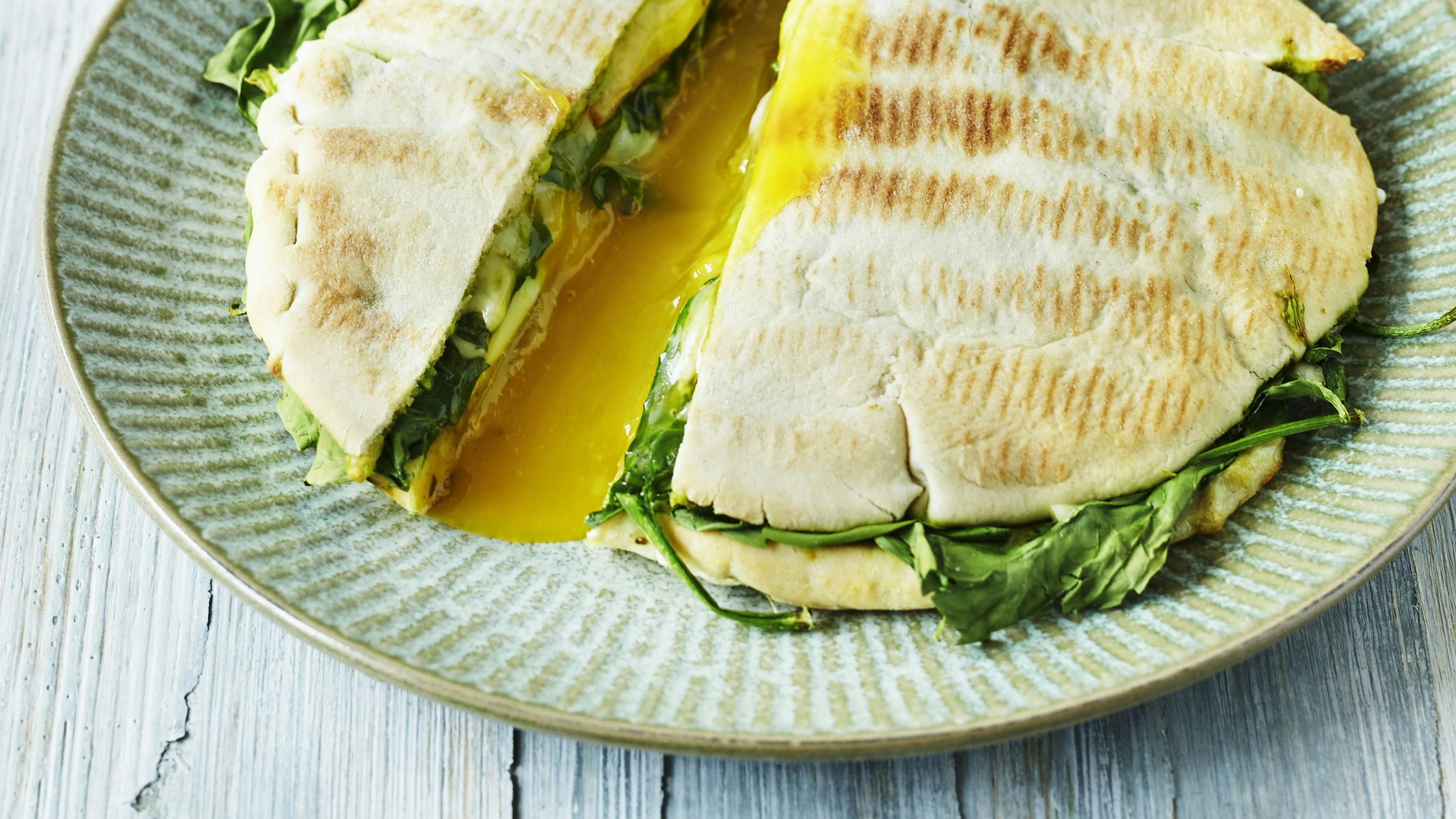 Pitabrødssandwich med skinke og æg: