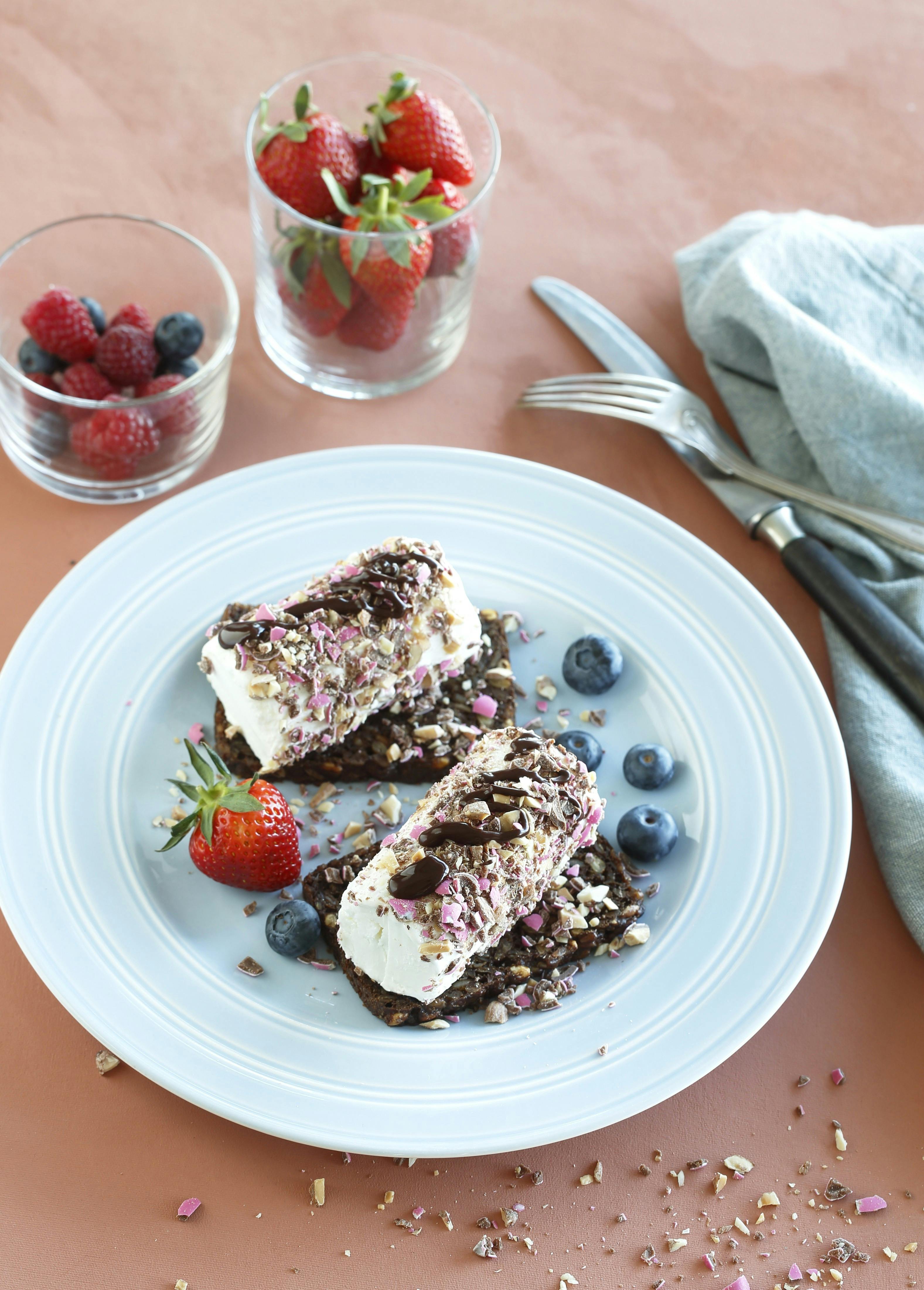 Opskrift fra Is Kuren: Vaniljeis på ristet rugbrød med knas og bær