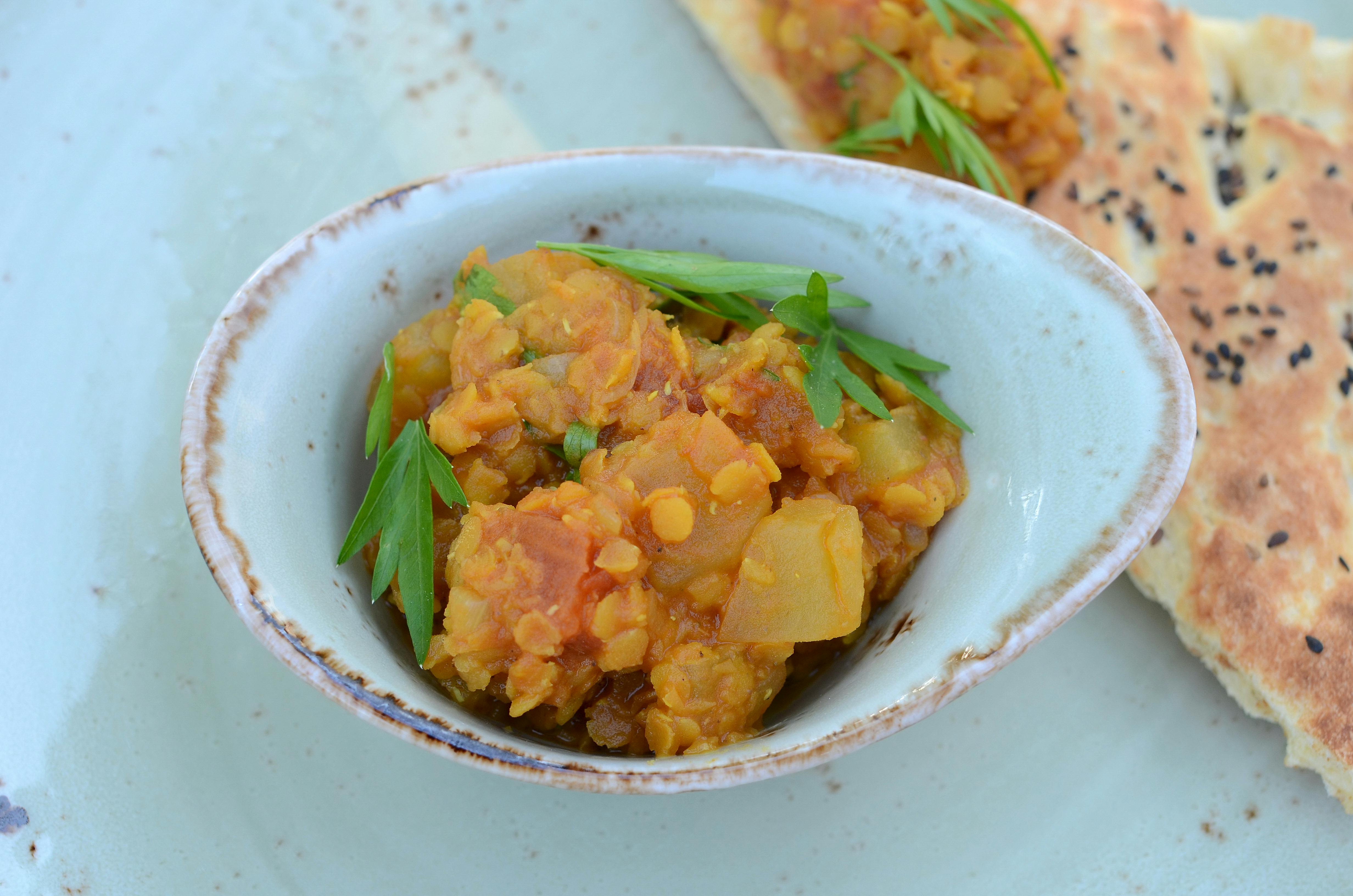 Dhal er en vigtig ret i det indiske køkken. Den er stærkt krydret med blandt andet koriander, spidskommen og cayennepeber, men styrken af krydderierne kan afpasses efter smag. Retten kan både fungere som hovedret og som tilbehør til en anden ret.